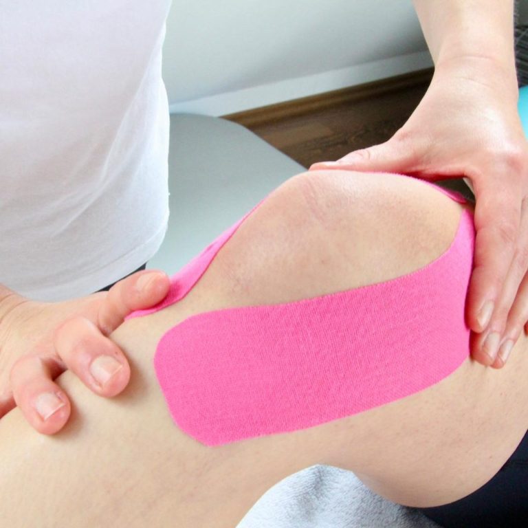 Kinesio-Tape – ist ein elastisches, textiles Klebeband, welches die Muskeln entspannen und damit Schmerzen lindern kann. Außerdem unterstützt es Gelenke und Verletzungen.